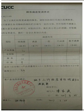 2、致力提升客戶滿意度。為更客觀評價公司為客戶提供的的產品和服務水平,發(fā)現(xiàn)自身存在的不足,推動業(yè)務改善,公司采取各種措施提升客戶滿意度。經調查了解,與當?shù)仄渌嗥髽I(yè)相比,我司在客戶中有良好的口碑。